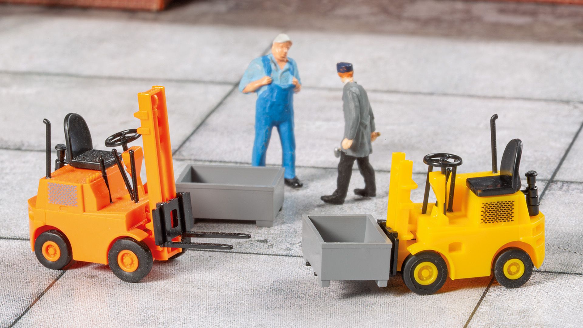 Der Hubmast beim Modell ist in zwei verschiedenen Längen neigbar und mit unterschiedlichen Gabelhöhen anbaubar. Paletten liegen bei und ermöglichen realistische Verladeszenen. Mit vorbildgerechter Bereifung, feiner Bedruckung und filigran nachgebildeten Bedienelementen.