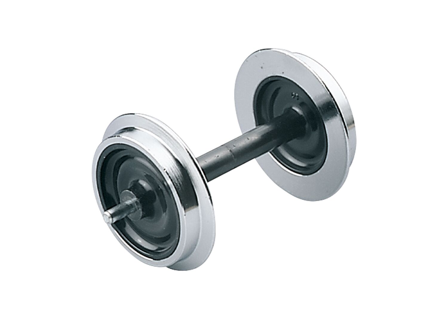 Scheibenradsatz mit hartverchromten Metall-Radring. Rad-Durchmesser 31 mm. Zum einfachen Austausch der Kunststoff-Scheibenradsätze.
