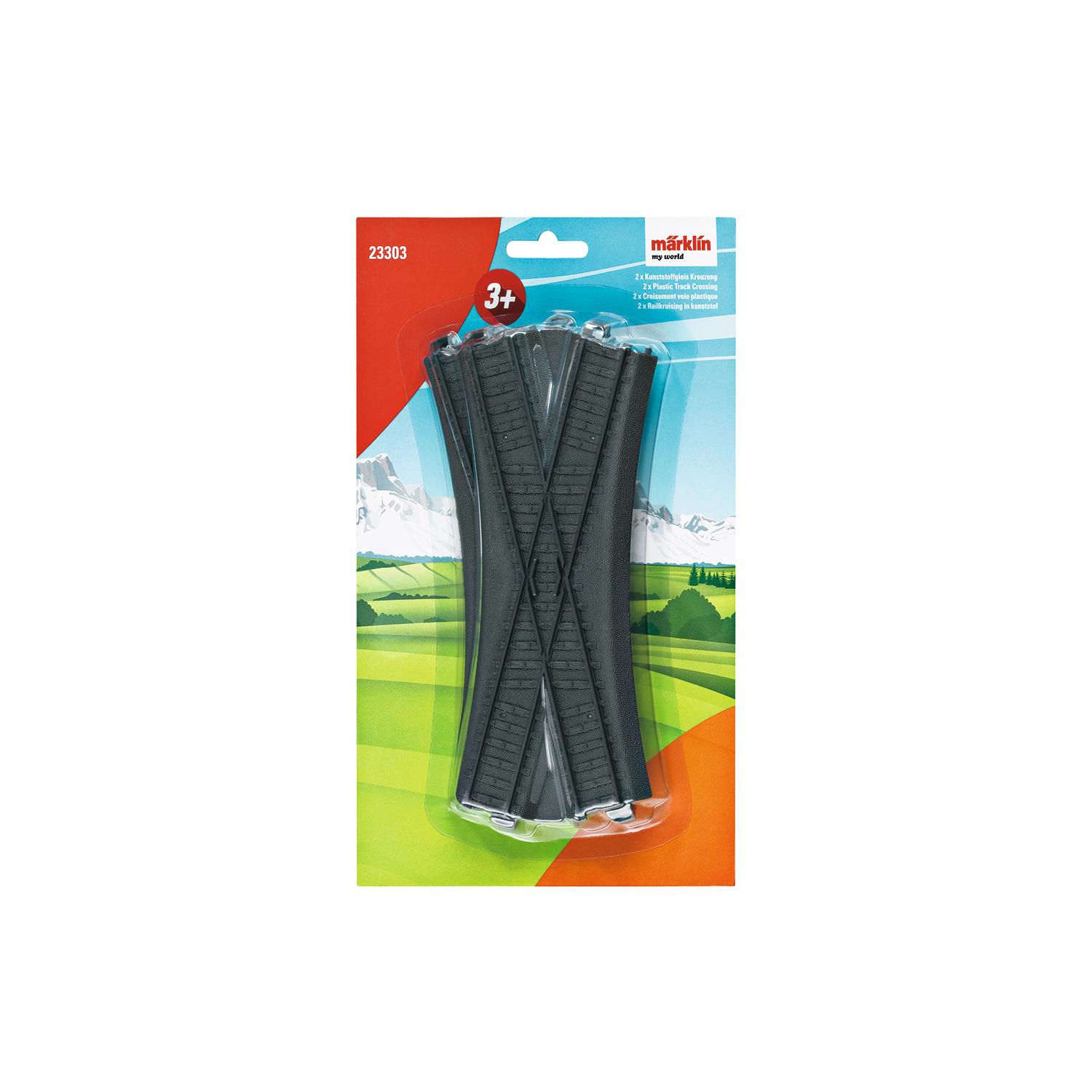 Ein Set (2 Stück) aus zwei Gleiskreuzungen, die das my world Gleissortiment um viele Aufbaumöglichkeiten erweitert. Die my world Gleisstücke sind aus stabilem, kindgerechten Kunststoff gefertigt.