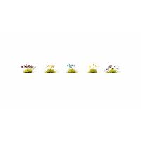 Unsere Blumen sind eine wunderschöne kleine Innovation: In einem Bett aus 4 mm langen grünen Fasern befinden sich einige 9 mm lange Fasern, die farbig beflockt sind. So lassen sich wunderbar natürlich wirkende Blumen im Modell nachbilden. Das Set enthält insgesamt 250 Blumen in jeweils fünf verschiedenen Farben.