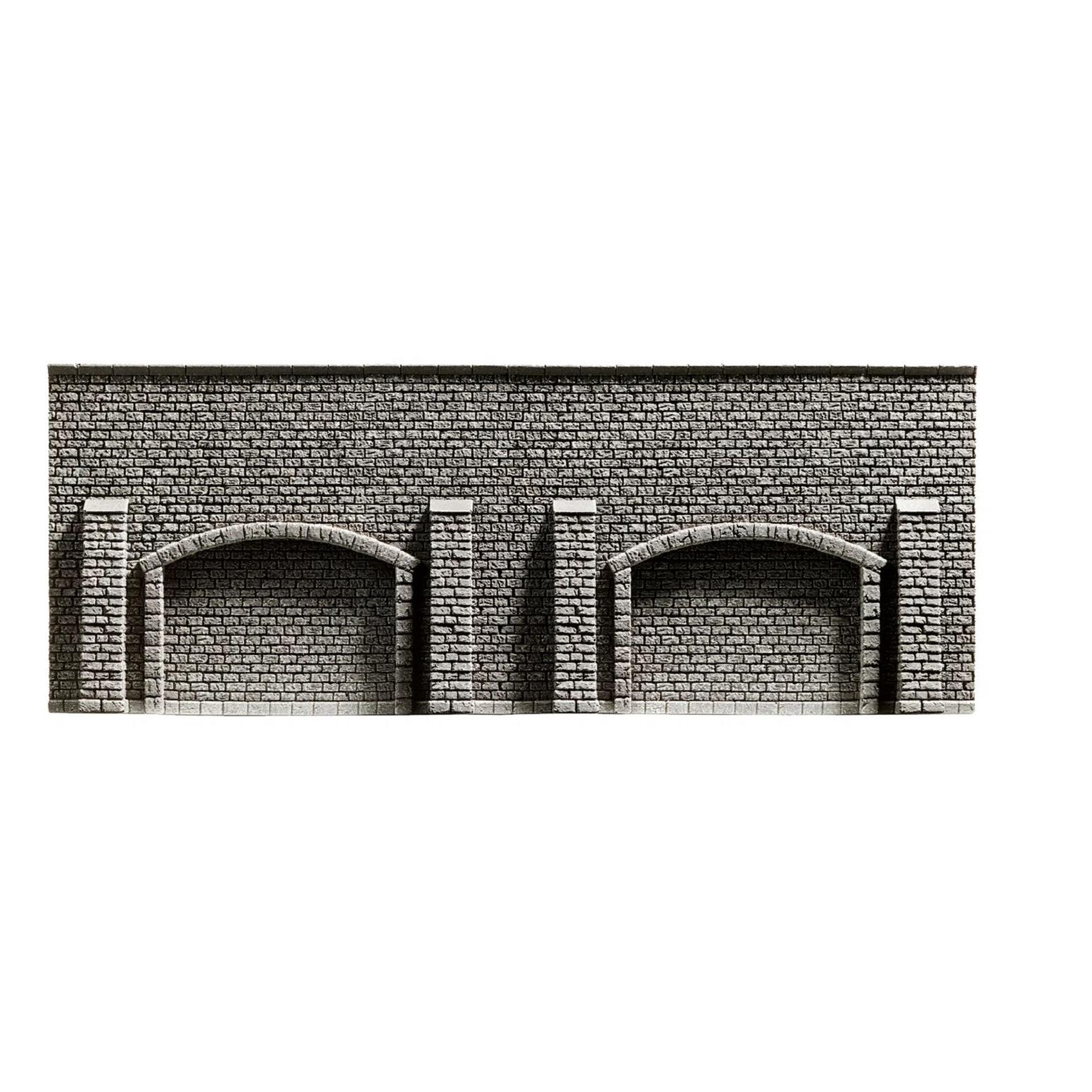 Die “Arkadenmauer” aus Hartschaum in der Spurweite H0 lässt sich perfekt als Zierde in einer Stadtszene an einem Bahnhof und neben schönen gestalteten Fachwerkhäusern anbringen. Die präzise geformte Gewölbestrukturen wirkt superrealistisch und wertet jede Modelleisenbahn auf.