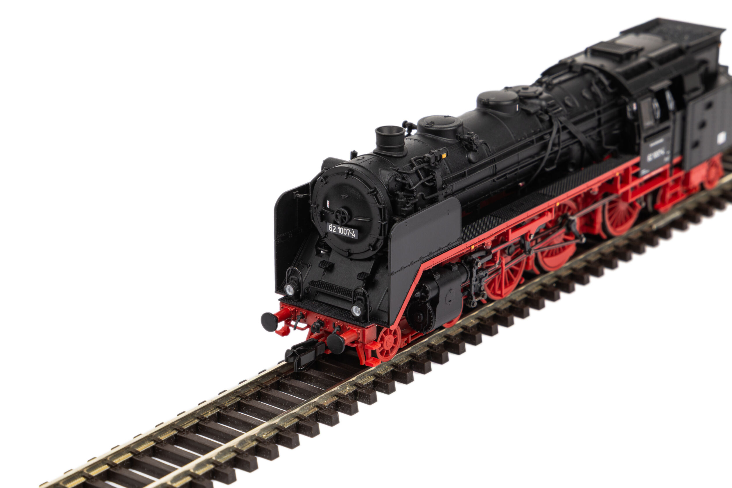 Kraftvoll, kompakt und trotzdem äußerst filigran präsentiert sich die BR 62 der DR in Epoche IV von PIKO. Die gedrungene Bauweise des Vorbildes wurde perfekt getroffen und maßstäblich ins Modell umgesetzt. Die typischen, baulichen Besonderheiten des Vorbilds wurden bei der Umsetzung ins Modell ebenfalls beachtet. Die glasklaren Fenstereinsätze des Führerhauses und der unverbaute Innenraum lassen den Blick auf die detaillierte Kessel- und Führerhausrückwand frei. Das Modell verfügt über optimale Fahreigenschaften. Für die unkomplizierte Nachrüstung eines Digitaldecoders steht eine moderne Next18-Schnittstelle zur Verfügung. Das Modell verfügt über TT Kurzkupplungen!