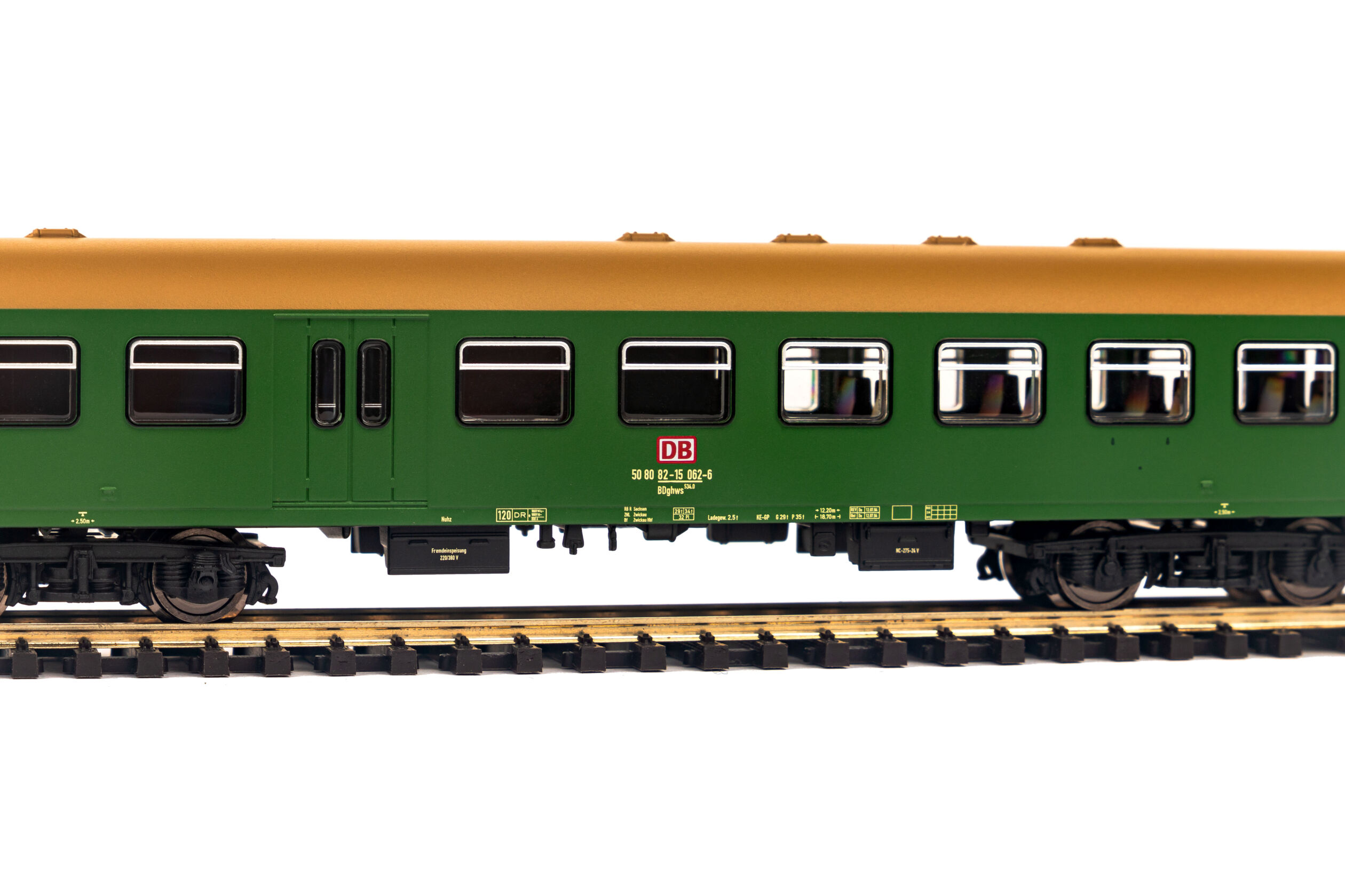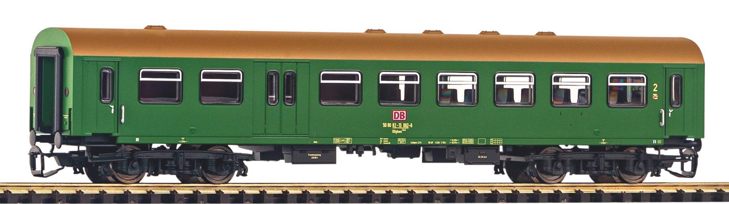 Druckvariante des 2.Klasse Rekowagens mit Gepäckabteil der DB AG, Ausführung in Epoche V. Passend zu den Modellen der Baureihen 110, 118, 119 und 132 der DR liefert PIKO drei Rekowagen-Bauarten mit den typischen Drehgestellen der Bauart Görlitz V. Da sich alle drei Wagen durch ihre Gliederung, ihre Inneneinrichtung und die Fensteraufteilung unterscheiden, waren auch im Modell drei komplette Entwicklungen erforderlich. Die Wagen überzeugen durch feinste Lackierung und Bedruckung, hervorragende Rolleigenschaften und hochdetaillierte Drehgestelle.