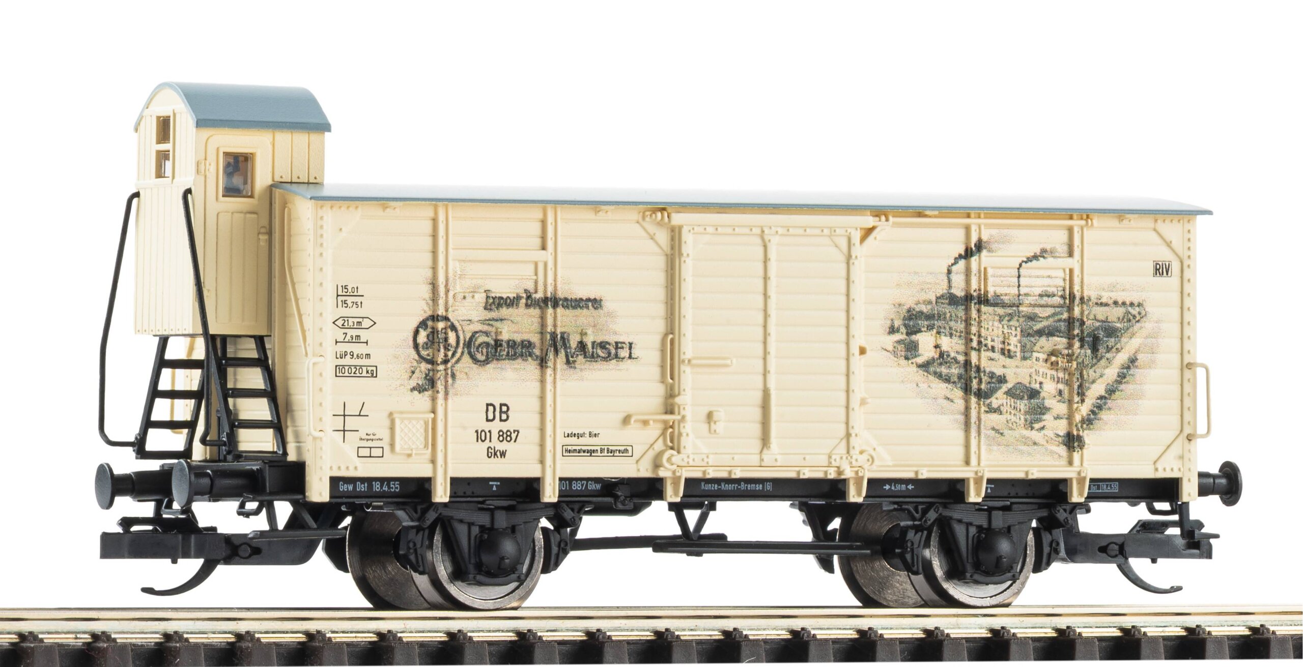 Neuheit 2026: Gedeckter Güterwagen G02 der DB im Design “Gebr. Maisel” in Epoche III. Der PIKO G02 ist ein klassischer gedeckter Güterwagen des Güterverkehrs und überzeugt auf Modellanlagen der Epoche III durch seine feine Umsetzung. Die Variante im historischen “Gebr. Maisel”-Design und mit Bremserhaus bringt zusätzliche Abwechslung auf die TT Modellbahngleise.