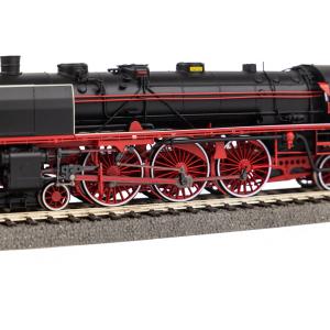 Für den Einsatz auf Strecken mit einer maximalen Radsatzlast von 18 t wurden zwischen1930 und 1938 insgesamt 298 Einheits-Schnellzuglokomotiven der Baureihe 03 für die Deutsche Reichsbahn gebaut. Nach dem Zweiten Weltkrieg gelangten 36 Lokomotiven in den Bestand der PKP und wurden dort als Pm2 geführt. Den eleganten Pacific-Dampflokomotiven widmete dereinst Arthur Honegger eine musikalische Komposition. Mit der 03 rollt eine solche Maschine in das PIKO Sortiment. Der hochliegende schlanke Kessel und der luftige Barrenrahmen mit freiem Durchblick prägen auch im Modell die Silhouette der Maschine. Besonders anmutig wirkt das filigrane Fahrwerk mit feinen Speichen und sehr plastischen Ausgleichsgewichten. Die Neukonstruktion verfügt über passenden Anbauteile wie etwa Glocken, Pumpen und Lampen. Zahlreiche angesetzte Kesselleitungen vervollständigen den äußeren Eindruck. Für ideale Fahreigenschaften sorgt der im Tender untergebrachte Antrieb samt Schwungmasse. Die werkseitig digitalen Varianten des Modells verfügen über schaltbare Beleuchtung auf dem Führerstand, sowie eine rot flackernde Feuerbüchse. Diese Funktionen sowie velfältige Sounds können mit dem werkseitig integrierten PIKO Sound-Decoder gesteuert werden. Die Soundvariante verfügt zudem ab Werk über einen integrierten Dampfgenerator.