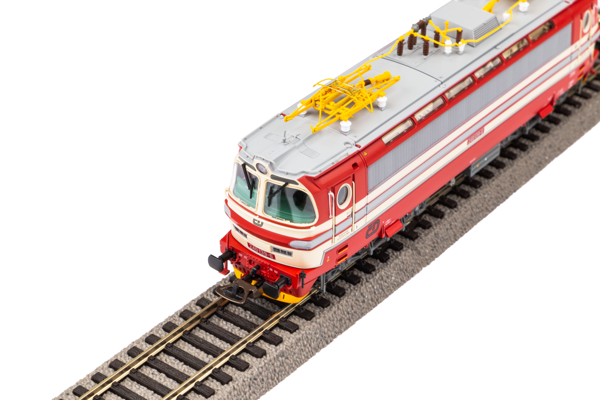 Die formschöne „Laminátka“ in der Ausführung als BR 240 der ČD in Epoche V. Die Anmut der formschönen Maschinen vom Typ Škoda 47E „Laminátka“ wurde hervorragend in den Maßstab 1:87 übertragen und ein absolut stimmiges Gesamtbild geschaffen. Die vielen attraktiven Details, wie etwa die Oberlichter im Maschinenraum, wurden elegant umgesetzt und die stark gliedernde Linienführung des Lokkastens durch scharfe Gravuren visualisiert. Die farbenfrohe Livree des Vorbilds, samt dynamisch wirkender Zierelemente, steht der Lok auch in 1:87 dank aufwendiger Lackierung und Bedruckung ausgezeichnet. Angetrieben wird die Lok durch einen fünfpoligen Motor, dessen gleichmäßiger Lauf durch zwei Schwungmassen perfektioniert wird. Eine mit der Fahrtrichtung wechselnde Beleuchtung in Rot und Weiß ist selbstverständlich vorhanden und in zeitgemäßer LED-Technik ausgeführt. Die Elektrolok verfügt in der Soundversion ab Werk über einen passenden PIKO Sound-Decoder inkl. Lautsprecher.