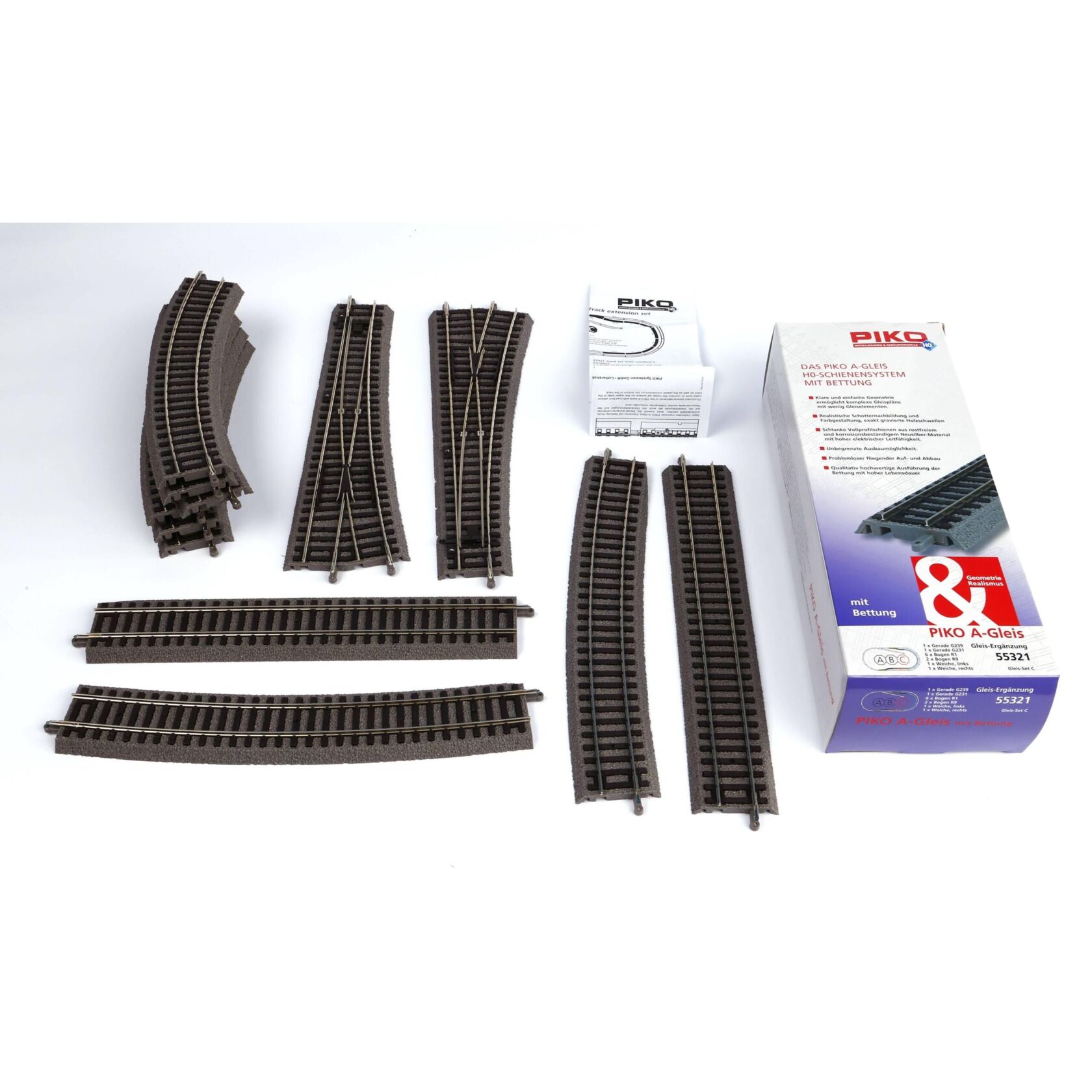 PIKO 55321 A-Gleis mit Bettung, Gleis-Ergänzung Set C, Spur H0