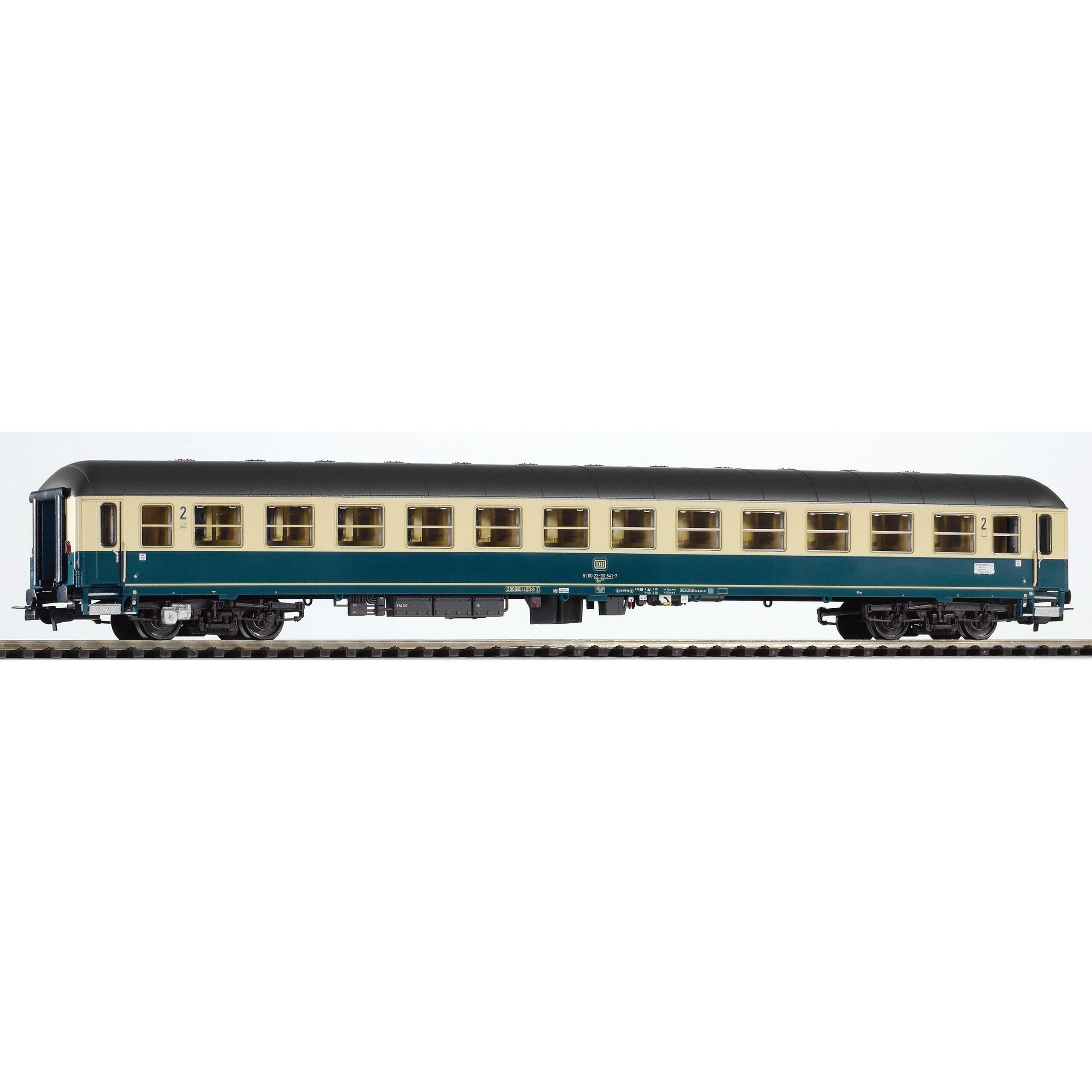 Neukonstruktion des Abteilwagens Bm 235 der DB in der Epoche IV in beige/blau, ausgestattet mit Inneneinrichtung und detaillierten Drehgestellen. Der Wagen ist für eine einfache Nachrüstung mit Innenbeleuchtung vorbereitet.