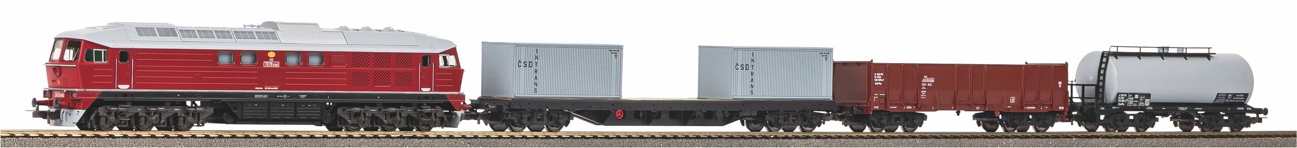 Den Güterzug aus den 1980er-Jahren zieht eine Diesellok T679 der ČSD. Im Set enthalten sind weiterhin ein Tragwagen mit Containern von Intrans, ein Wagen der Gattung Eal sowie ein vierachsiger Kesselwagen Zas.